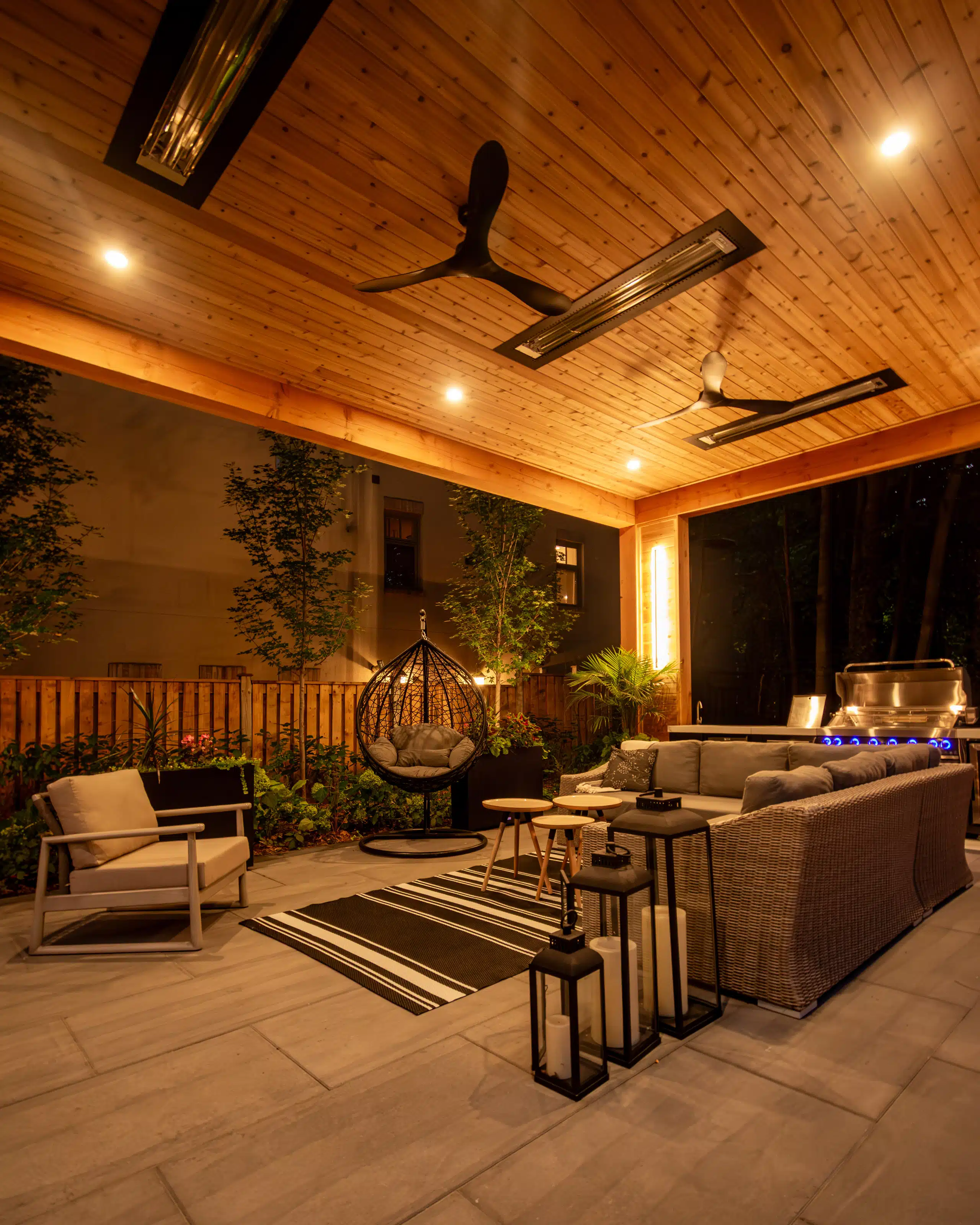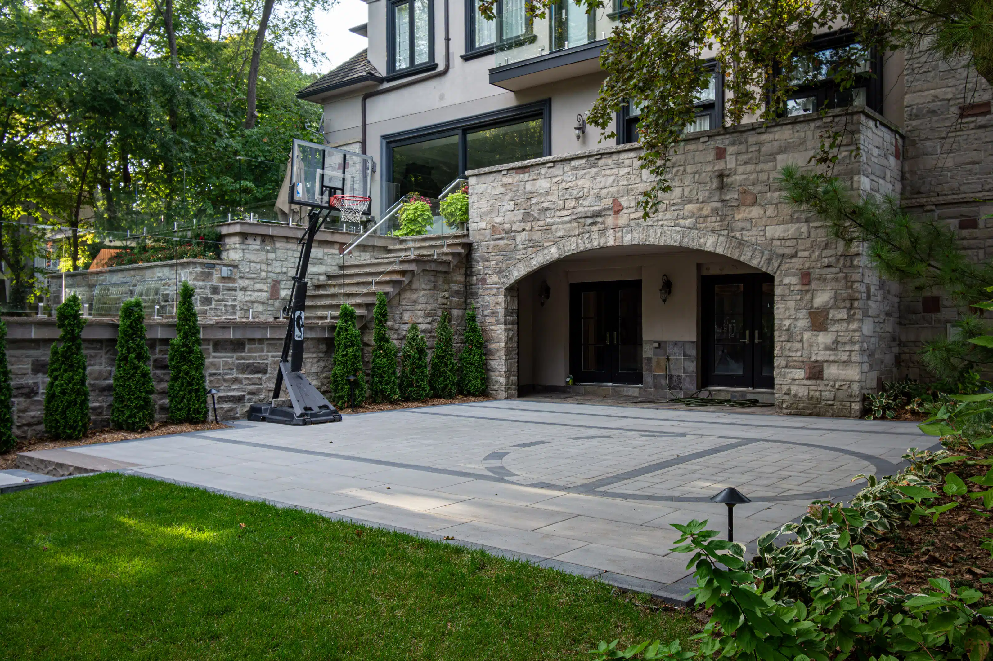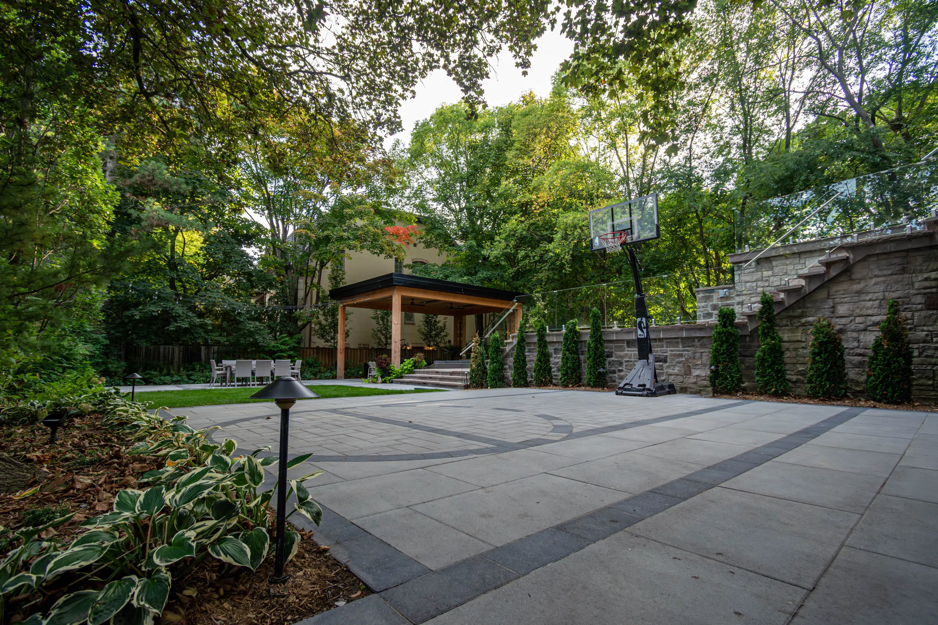 This property’s versatility doesn’t end with the aforementioned features as dining space adorned with bistro lighting for late night gatherings plus a half-basketball court perfect for active guests are located nearby. All together, this backyard has created a dream environment for our happy clients.
